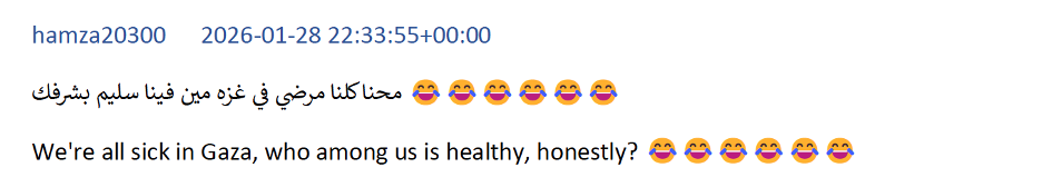 Hamas-affiliated channels continue to deflect responsibility toward external actors. It is unlikely a coincidence that the establishment of new security and intelligence units has coincided with less visibility of dissent and a stronger pro-Hamas sentiment. Taken together, this could limit the possibilities for the emergence of organized civilian opposition to Hamas and could reinforce a climate of fear and political paralysis.