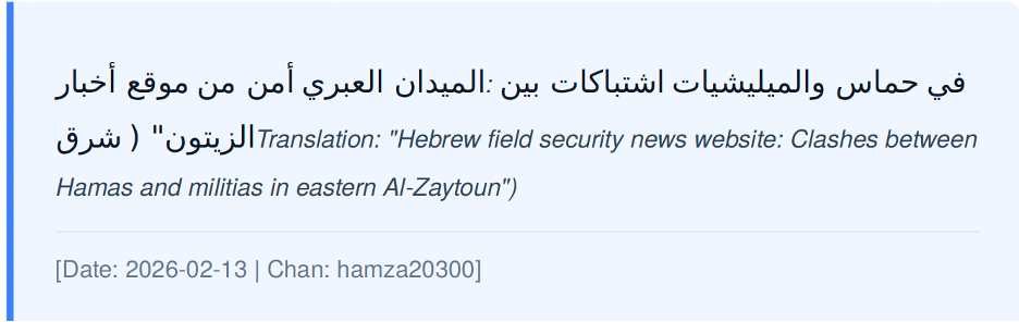 This week’s analysis featured increasing civilian discussions around clashes in Al-Zaytoun and eastern Rafah. Reports indicated confrontations between established Hamas units and reemerging local militias. This is a notable development, as there have been limited overt challenges to Hamas’s monopoly on violence since the cease-fire. If sustained, this would be a significant problem for the cease-fire’s durability, as the “truce” negotiated by Hamas’s political echelons may lose effectiveness amid ground-level clashes.